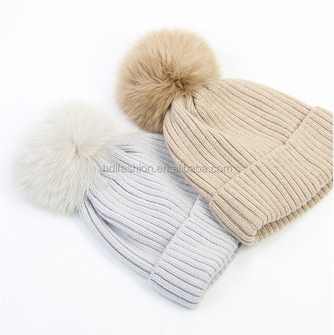 Özel LOGO kadın yüksek kalite kalın kış kaşmir kaburga örme Pom Pom kürk kış bere şapka