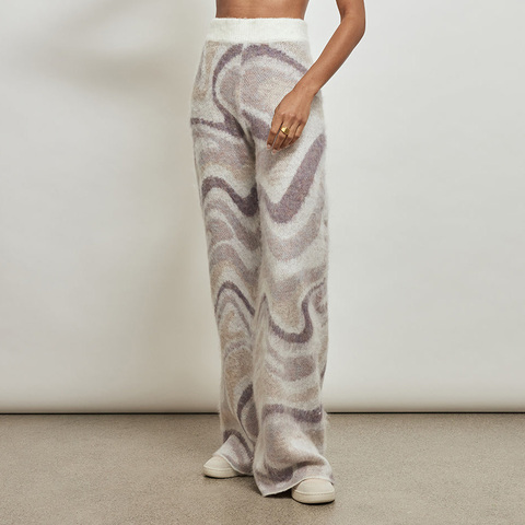 사용자 정의 여성 니트 바지 겨울 자카드 니트 바지 여성 니트웨어 모피 모헤어 스웨터 졸라매는 끈 니트 바지